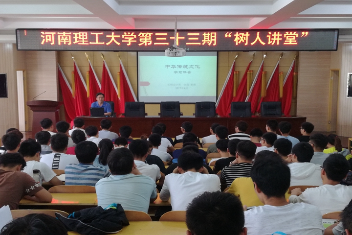 6月6日下午,由校学生工作部(处)主办、机械学院承办的“河南理工大学第三十三期‘树人讲堂’”在机械学院205会议室举行,该院机械设计系教授张海受邀作了关于“中华优秀传统文化”的主题报告,近200名学生参加了报告会。报告会由该院党委副书记许荣梅主持。
