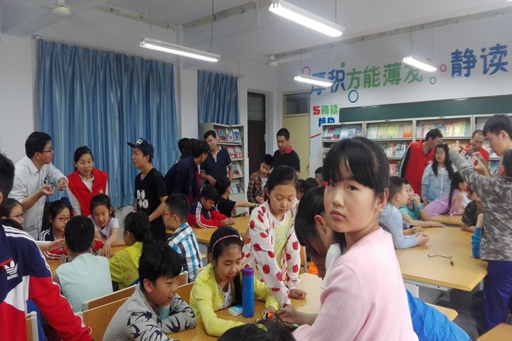 在附属小学四楼阅览室,服务队成员首先给小学生们介绍了“机器人”类别、“机器人”构造、“机器人”在生产生活中的运用、“机器人”未来发展等科普知识,志愿者生动形象的讲解深深吸引了大家的注意力。接着,在服务队成员指导下,学生们分成了5小组,用“创意之星”机器人套件组装了不同类型的壁障小车,并进行了现场表演。在互动交流环节,志愿者还向大家详细介绍了机器人特性、操控注意事项及设计构思技巧等。整个过程,小学生们的动手能力、逻辑思维和创造力得到了提升,激发了大家浓厚的兴趣。