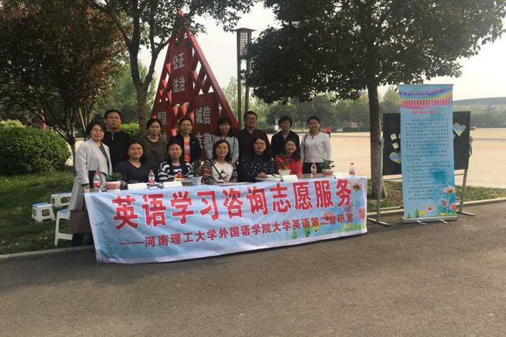 4月15日,外国语学院大学英语第二教研室全体教师在龙源湖公园西门志愿者服务亭开展了英语学习咨询志愿服务活动。