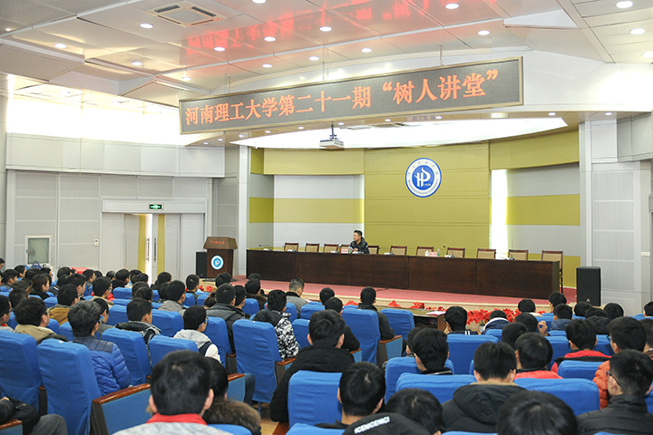 12月18日上午,由校学生工作部(处)主办、机械学院承办的河南理工大学第二十一期“树人讲堂”在我校学术报告厅举行。我校杰出校友、河南和信装饰工程有限公司董事长姚晓峰应邀作了题为《立德做人、勤学善思、智慧处事》的主题报告,该院2016级新生辅导员及300余名学生参加了报告会。报告会由该院党委书记聂凯主持。