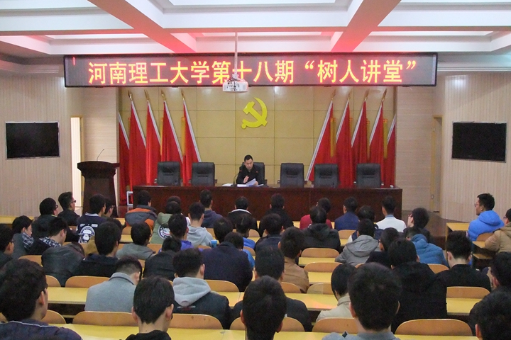 12月8日下午,由校学生工作部(处)主办、机械学院承办的河南理工大学第十八期“树人讲堂”在机械学院楼205会议室举行。该院党委书记聂凯应邀作了题为《知校史、遵校训、扬校风,做合格大学生》的主题讲座,该院2015级学生辅导员及200余名学生参加了讲座。讲座由该院党委副书记许荣梅主持。
