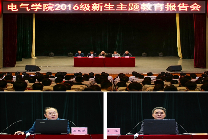 为了使16级新生能够更快的转变角色,更好的适应大学生活,引导学生树立远大目标,坚定理想信念,10月27日晚,电气学院2016级新生主题教育报告会在小礼堂举办。该院党政负责人康全玉、王福忠、王瑞、钱伟、王红旗,16级辅导员及全体16级新生参加了报告会。会议由王瑞主持。