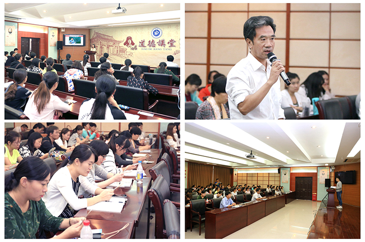 9月27日下午,由校文明办主办、党委宣传部承办的“道德讲堂”走进医学院主题活动在明德楼一楼会议室举行。医学院全体教职工参加了活动。