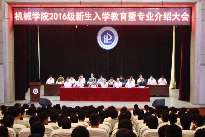 9月27日下午,机械学院在小礼堂举办了“2016级新生入学教育暨专业介绍大会”,该院党政领导,各系部、职能部门负责人、新生辅导员和近800名新生参加了会议,大会由该院党委副书记许荣梅主持。