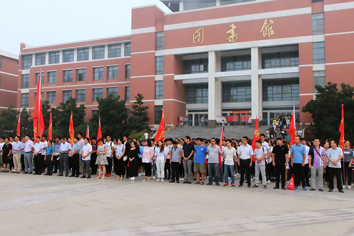 9月18日,学校在中心广场举行“勿忘国耻、振兴中华”纪念九·一八主题升国旗仪式。仪式由材料学院承办,学生工作部、材料学院、化工学院师生4000多人参加仪式,仪式由材料学院副院长朱建平主持。