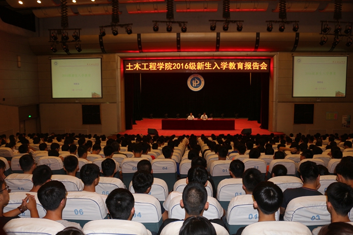9月10日晚,土木工程学院在小礼堂举行2016级新生入学教育报告会。该院党委书记朱天明、院长刘希亮、党委副书记张明、副院长王有凯、新生辅导员及2016级768名新生参加了报告会。会议由王有凯主持。