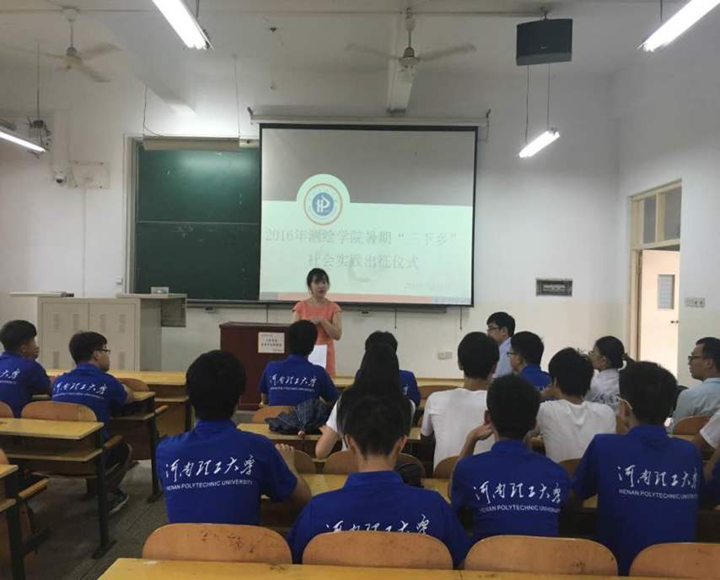 为贯彻落实《关于开展2016年河南省大中专学生志愿者暑期文化科技卫生“三下乡”社会实践活动的通知》文件精神,引领青年学生树立和践行社会主义核心价值观、积极投身“十三五”建设,在中原崛起、河南振兴、富民强省进程中走前列、争先锋、作贡献,各学院在我校2016年暑期社会实践出征仪式前后,积极组织暑期社会实践动员大会。活动的开展进一步明确了暑期社会实践的要求,增强了同学们投身暑期社会实践的热情。
