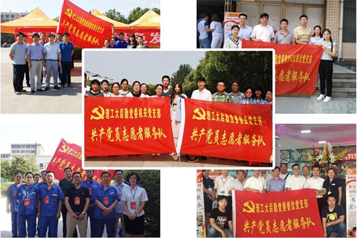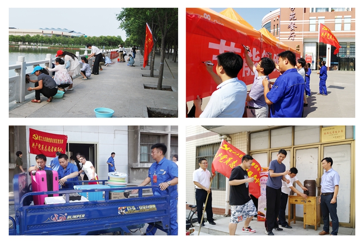 活动期间,后勤集团公司机关党支部、物业党支部和幼教印刷厂综合党支部全体党员对东湖围栏进行了清洗,党员们克服工作量大、气温高等困难,经过一个小时的刷洗,东湖沿岸400余米的栏杆被擦拭一新。在毕业生退宿现场,餐饮党支部和宿教商贸综合党支部为学生免费制作发放了2400余份爱心绿豆汤,给高温下等待退宿的毕业生们送去了关怀,带去了清凉。能源建安综合党支部在学苑餐厅小广场举行了“节能领跑,绿色发展”节能宣传活动,通过张贴宣传展板,发放节能宣传材料,组织师生签名等形式,师生的节能意识得到了进一步增强;组织到老教工、老党员家中开展了“献爱心送温暖”活动,帮助他们解决了日常生活困难,得到了老同志们的赞扬和肯定。北校区党支部组织党员成立了“义务搬家队”,利用三轮车等工具义务帮助学生将大件行李搬运至新宿舍楼,受到了广大学生的热烈欢迎。