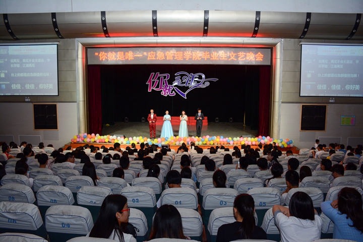 6月12日晚,应急学院“你就是唯一”——欢送2016届毕业生晚会在学校小礼堂举办。该院党政领导杨艳玲、陈安、赵观石、张永领和2012级全体毕业生及部分师生代表观看了晚会。