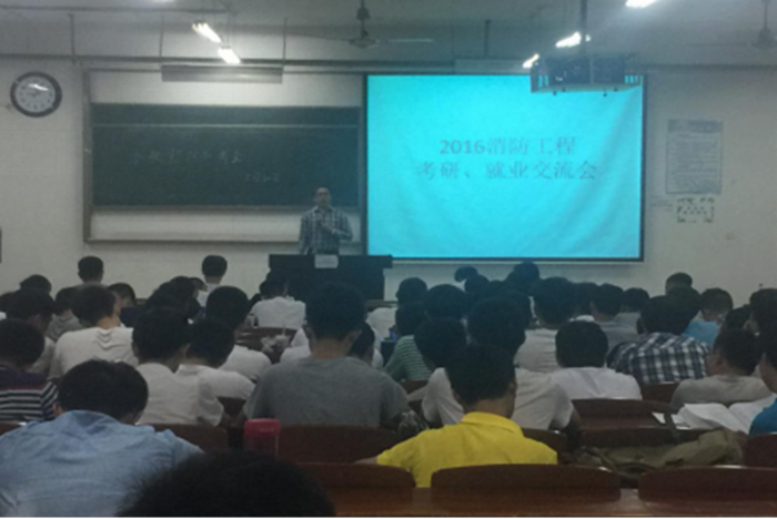 消防工程专业2016届毕业生共46人,其中4人考取浙江、上海等地武警消防总队,17人考取中南大学、中国矿业大学、华南理工大学、中国石油大学、武汉理工大学等学校研究生,20余人已签约中铁一局集团城市建设工程有限公司、青岛鼎信通讯消防安全有限公司、九江中船消防设备有限公司、河南三鹰实业有限公司等国内知名消防企业。交流会中,优秀毕业生代表结合自身经历分别就“如何选择考研学校和导师”“如何选择消防企业和职位”“消防总队的报考要求、面试及政审流程”等问题,耐心细致地向低年级同学传授了各自的准备心得、复习备考经验和求职技巧,得到了与会同学的广泛好评。