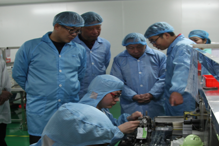 座谈会前,李振华等人在公司相关领导的陪同下深入参观了公司产品研发和生产流程,了解企业经营情况并听取了相关负责人对公司的介绍。