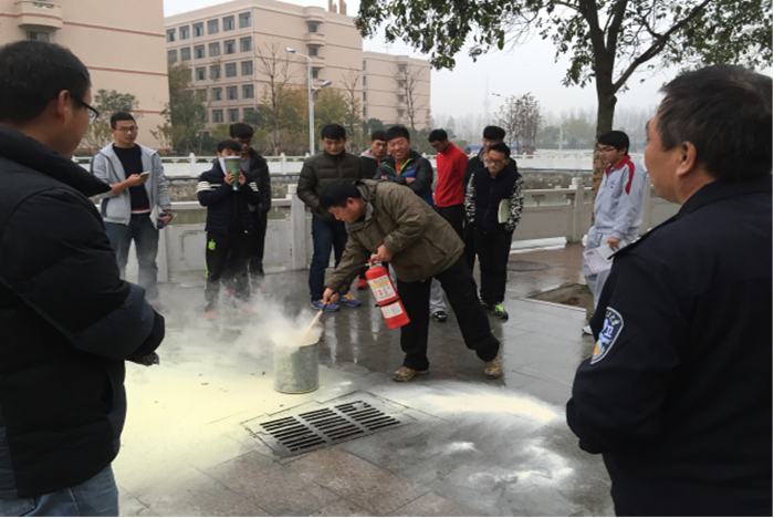 讲座结束后,保卫处消防科为学院师生介绍了常用的灭火器材及其使用方法,对使用灭火器时的注意事项作了重点强调。学院组织实地灭火演练,部分师生亲身操作了灭火器材,了解并掌握了灭火器的正确使用方法。