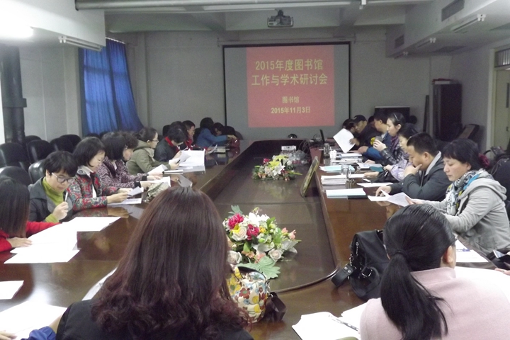 为了推进图书馆工作业务与学术研究的发展,11月3日,图书馆在会议室召开了2015年度图书馆工作与学术研讨会,提交会议论文的馆员、具有高级职称馆员、学术研究积极分子及图书馆处科级干部参加了此次会议。