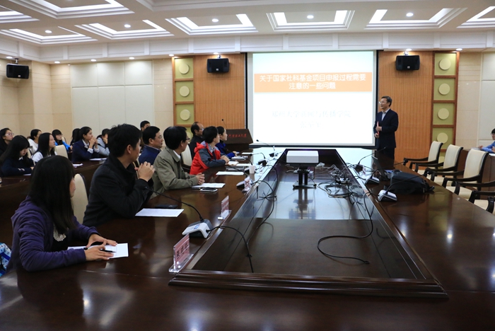 报告中,张举玺以国家社科基金项目申报工作为主题,简要分析了科学研究如何与经济社会发展及地方特色相结合,并就研究方向的培养与凝练,课题的选择、论证、课题组成员及注意事项等进行了详细解析。他深刻阐述了数据研究的重要性,并与现场师生就学科专业发展和项目申报工作进行了充分沟通和交流。