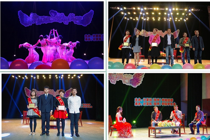 晚会期间,主持人及嘉宾对获得2014年度计算机学院“师德之星”“教学之星”“科技之星”以及“服务之星”的教师进行了颁奖和采访。“教学之星”吴正江分享了自己多年的教学经验,并告诫学生们要有一技之长:“师德之星”王建芳向大家讲述了自己和学生之间的感人故事;“科技之星”王志衡和刘红敏是一对甘苦共进、相濡以沫的恩爱夫妻,在看似枯燥的科学领域挖掘出了他们的快乐与自豪;“服务之星”汪志英向大家揭示了她“生缘”好的秘诀是真心实意爱护学生,全心全意为学生服务。获奖老师们用自己的实际行动诠释了新时代的师生情。