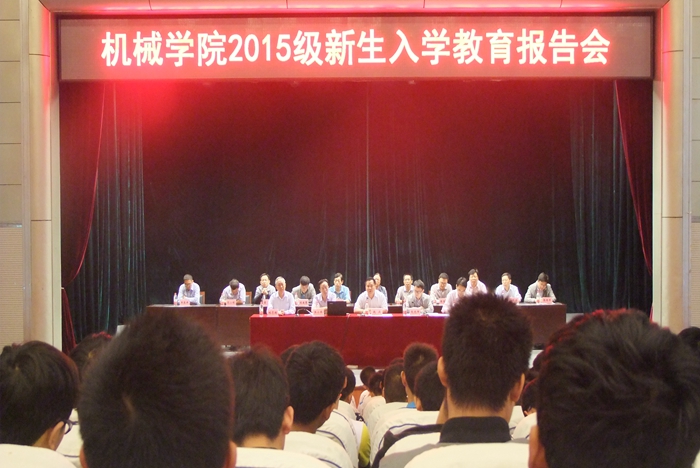 9月13日上午,机械学院在学校小礼堂召开2015级新生入学教育报告会。该院党政领导、各系部主任、实验室负责人、科室负责人、2015级新生辅导员、班主任与750余名新生参加了报告会。会议由该院党委副书记支光辉主持。