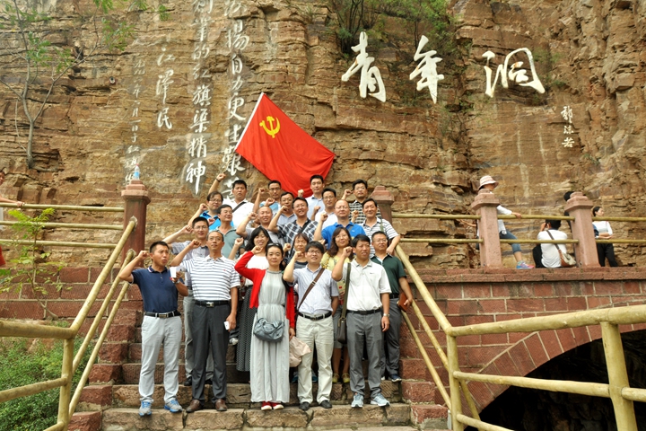 此后,大家实地考察了红旗渠分水闸和红旗渠总干渠的咽喉工程之一“青年洞”。全长616米、高5米、宽6.2米的青年洞,是当时由300名青年组成突击队,克服自然灾害和经济因难,经过1年零5个月的奋战,完成的红旗渠建设工程,是红旗渠“劈开太行山,漳河穿山来”的关键,更是“自力更生、艰苦创业,团结勇敢、无私奉献”的红旗渠精神的集中体现。巍巍太行耸立眼前,涛涛渠水穿山而过,此情此景深深震撼着大家。在青年洞前,学院党委组织大家庄严宣誓,重温了入党誓词。