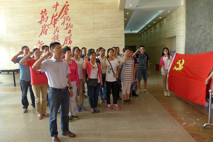 “我志愿加入中国共产党,拥护党的纲领,遵守党的章程……”6月27日,铿锵有力的入党誓词响彻在山西武乡八路军太行纪念馆将军厅,建艺学院10个基层党支部的27名教工、学生党员代表面对鲜红的党旗重温入党誓词,这是该院为纪念建党94周年暨深入开展“三严三实”专题教育的特色活动之一。