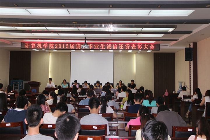 为做好2015届贷款毕业生贷后管理工作,引导学生心存感恩、信守承诺、守约还款,6月12日下午,计算机学院在该院201会议室召开2015届贷款毕业生诚信还贷表彰大会。
