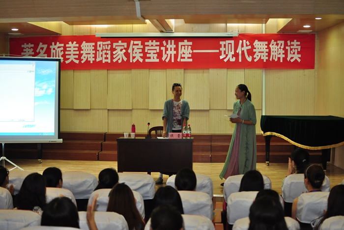 候莹一行参观了音乐学院舞蹈专业的教学设施和场地。 对学生进行了为期2天的公开教学。她认为正确的舞蹈意识是舞蹈学习的基础,她鼓励学生们要勇于尝试敢于创新。讲座中她从现代舞的发展史讲到了现代舞主要流派,及他们的代表人物,尤其是那些知名的编导和演员很多时候都是在师承之后又独树一帜建立了自己的技术理论体系。从而带给大家在今后课堂学习中的思考,不要一味的模仿,也要更多的想到突破。