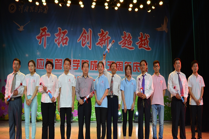 一曲慷慨激昂的《为你歌唱》拉开了庆典的序幕。庆典围绕着“开拓”“创新”“超越”3个主题展开。该院教师申霞的演讲以“披荆斩棘,开榛拓荒,筚路蓝缕,伟业初创;学播宇内,道传四洋,唯我应急,凤翥龙翔”讲述了学院成立之初,一群有志之士昂扬出发,开拓应急管理事业的难忘历程,赞颂了他们风雨兼程、不断进取的精神;李森林同学的演讲通过自己的真诚心声,抒发了与学院之间的爱恨情仇,那浸透着欢笑与泪水的过往,包含着对充满创新活力的学院的深爱;执行院长陈安一曲《等待》,展现了应急人凝心聚力、志存高远、永不停歇、不断超越的雄心壮志。庆典共进行了6次颁奖,分别对为学院发展做出重大贡献的教师、机关人员、学院领导以及表现突出的学生进行了表彰并颁发了证书。典礼最后,会场全体师生共唱《超越梦想》,把氛围推向高潮。