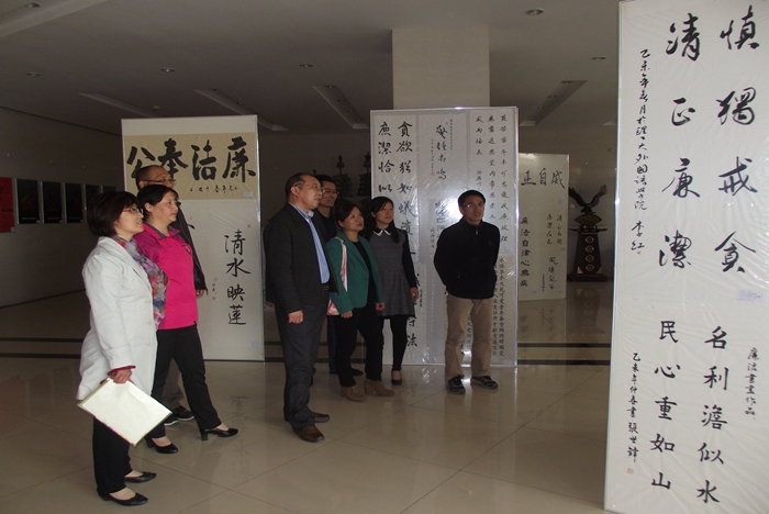 为增强党员干部的廉洁从政意识,筑牢拒腐防变的思想道德防线,让廉政教育建设深入人心,4月21日下午,高等职业学院和应用技术学院全体教职工在该院党总支书记王心义的带领下,参观了学校举办的“河南理工大学廉洁书画作品展”,接受廉政文化的教育和洗礼。