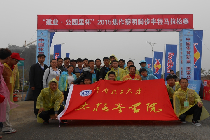 4月18日上午,市政府会展中心门前广场人山人海,身着统一服装的3000多名长跑选手云集这里,参加“建业·公园里杯”2015焦作黎明脚步半程马拉松赛。市领导葛探宇、李海松、范涛及焦作籍奥运冠军陈中出席开赛仪式。受焦作市体育局选派,我校体育学院教授赵新平等10名党员教师和30名学生牺牲自己的周末休息时间,担任本次比赛的执行裁判。
