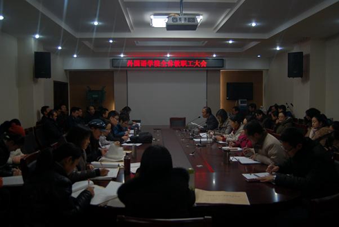3月17日下午,外国语学院在文综楼三楼311会议室召开全体教职工大会,传达贯彻学校2015年工作会议精神,该院全体教职工参加会议。会议由该院党委书记赵昉主持。