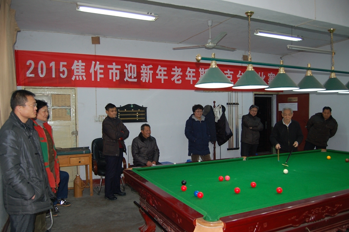 1月13日上午,焦作市第二届老年人体育健身大会暨2015年迎新年斯诺克台球赛在我校离退休工作处二楼斯诺克台球室挥杆开赛。来自全市各单位老年台球爱好者相聚我校以此欢庆新年。