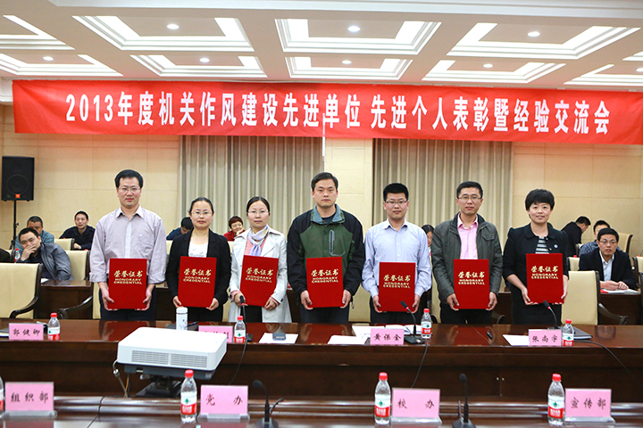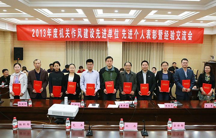会上,张尚字同志宣读了《关于表彰2013年度机关作风建设先进单位和先进个人的决定》,孟钟剑同志宣读了《关于表彰2013年度机关卫生标兵单位的决定》,与会委员为各获奖单位和获奖个人分别颁发荣誉证书。随后,参加会议的机关干部职工围绕加强机关作风建设,结合自身工作实际,畅谈工作感悟和体会,交流工作经验。大家一致认为,作为一名机关人,在各自的岗位上要恪尽职守,真心实意为师生服务,把加强和改进工作作风作为自己责无旁贷的义务。