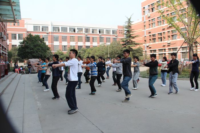 4月1日下午,能源学院2014年创意啦啦舞初赛在学院楼前荷花池广场举行。学院党委副书记杨可臣等担任评委。