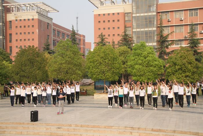 舞动青春,尽显无限活力。4月8日下午建艺学院于荷花池广场举行了学院2014年啦啦舞初赛。建艺学院党委副书记李怀珍等观看了比赛并担任评委,参赛队员由啦啦舞全体成员组成。