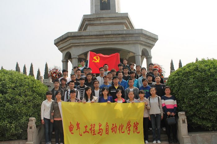 扫墓活动在庄严肃穆的气氛中开始。首先,聂君昊同学代表电气学院学生党员向烈士致辞,他说,无数革命先烈虽然没有名垂千古,但他们为民族独立和人民解放所作出的巨大贡献值得永远铭记,作为学生党员要牢记革命先烈的光辉事迹,奋发图强,胸怀大志,为我们的祖国创造更加辉煌的历史。随后,全体肃立,齐唱国歌,表达对烈士的哀思和对祖国的热爱,并向烈士敬献花篮。学生党员们在肃穆的纪念碑前默哀,静静的追思革命先烈坚毅果敢的大无畏精神,瞻仰与追思先烈的丰功伟绩。默哀毕,2012级学生第一支部组织委员宋之倩带领学生党员在党旗前重温入党誓词,响亮的誓词在空中回旋,代表着同学们学习革命精神的坚定信念和不懈追求。最后,学生党员们瞻仰革命烈士墓,迈进烈士遗迹纪念馆,认真听取工作人员讲解革命先烈的英勇事迹,学习他们舍生取义,矢志不渝的奉献精神。革命先烈们的英雄事迹和为了人民的解放事业不怕牺牲、视死如归的英雄气概,让同学们心里油然而生崇敬之情,大家都被一种大无畏的革命浩然之气感动着。