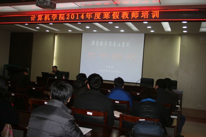 2014年马年春节寒假即将结束之际,为了让学院的教师能更快地适应开学以后的工作,充分利用寒假这样一个假期为自己充电,数信学院按照学校的要求特组织了寒假教师培训工作。整个培训工作共两天时间。