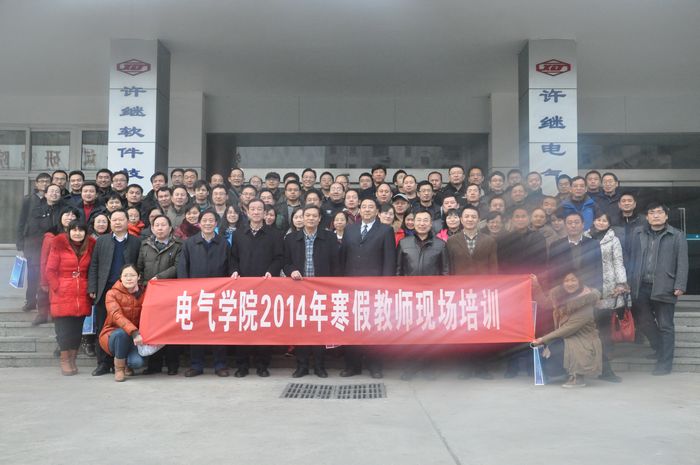 为提高教师基本素养和业务能力,电气学院于2014年2月21、22日举办了“寒假教师培训活动”, 学院百余名教师参加了此次培训。本次培训分为两天,第一天培训在电气学院204举行,分别由副校长景国勋、科技管理处常务副处长李东艳和电气学院院长付子义担纲主讲,第二天学院安排教师赴许昌许继电气股份有限公司进行了实地参观交流。