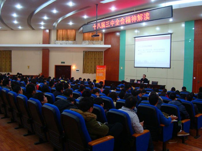 最后,朱雪里强调,十八届三中全会对于中国未来相当长一段时间内各个重要领域和关键环节以及相关方面的改革发展具有决定性意义,希望全体研究生能够结合自身实际,认真学习贯彻好十八届三中全会精神。朱雪里语言幽默风趣、论述清晰而富有感染力,紧密结合国内外时事动态,深入浅出地为全体与会人员解读了全会精神。