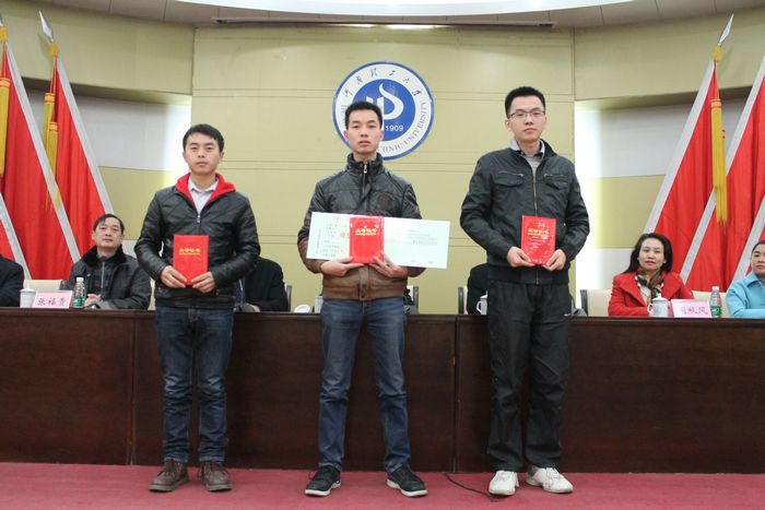 获奖学生代表鲁雷发言,表达了对华飞公司和学校领导及老师由衷的感激,并表示,今后一定知行结合,增强团队协作能力,培养创新意识,成为符合时代要求的大学生。