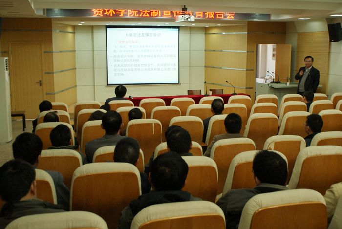 11月19日下午,资环学院举办的“法制宣传教育报告会”在资环楼影像厅如期举行,本次报告会由校科技处张国成处长担任主讲。会议由资环学院党委书记张贵江主持,全体教职工参加了会议。