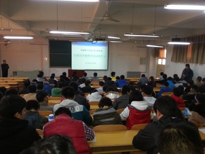 为切实落实法制宣传教育月活动,提高学生的安全防范意识。11月20日下午,计算机学院于学院楼106教室举办了法制教育报告会。此次报告由学校保卫处王忠老师主讲,该院各年级班长、团支书和生活委员等参加此次报告会。
