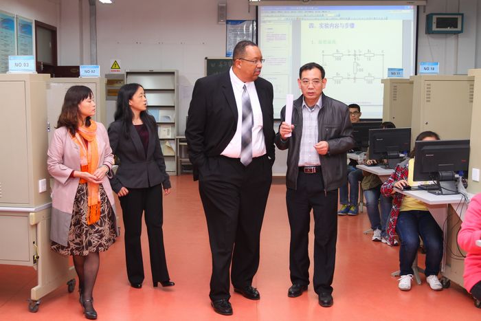 北卡农工州立大学电气系主任Dr.John Kelly博士参观电工电子示范中心