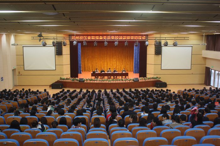 10月29日下午,万方学院郑州校区在宇华讲堂举行首期预备党员党校培训班开班仪式,院党委副书记、院党校副校长解东辉,院长助理、党政办公室主任尚敏,经管系党总支书记马学路,建测系党总支副书记张巨峰,文法系党总支副书记谢树华、以及680余名预备党员参加了培训。仪式由尚敏主持。