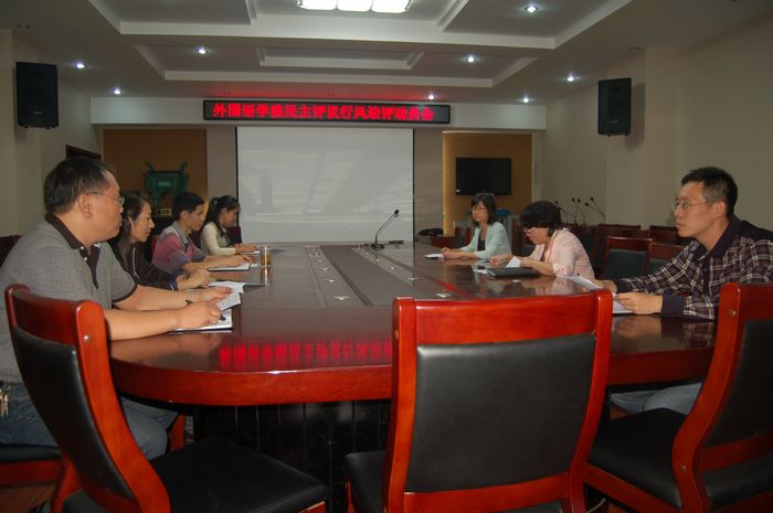 9月28日下午,外国语学院2013年民主评议行风迎评动员会在文综楼311会议室召开。学院党委书记赵昉、党委副书记王哲、教学副院长李惠敏及党政办、教研办、考务办、学工办的相关负责人参加了此次会议。会议由党委书记赵昉主持。