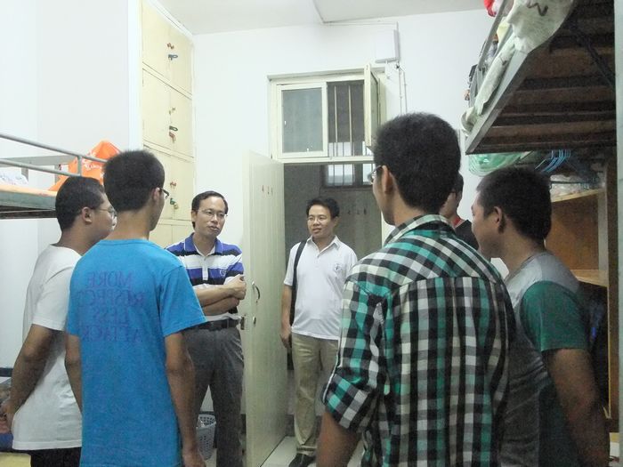 来到新生宿舍,欧阳文峰一行关切地询问同学们的住宿、饮食、天气适应等状况,针对可能水土不服的外省籍学生,还详细的为他们介绍学校各个餐厅的饮食分布,同时表达了对少数民族同学的尊重和关爱。学院领导还仔细查看了宿舍各种基础设施,以确保新生安心住下来,并频频记录下来同学们存在的问题以便及时解决,令同学们感到家的温暖。学院领导的亲切问候和语重心长的嘱咐引来了同学们的阵阵掌声,各个宿舍气氛十分温馨热烈。新生们深刻地感受到了“材料人”大家庭的温暖,并表示将不辜负学院领导和老师的期望,刻苦学习、早日成才、回报学院、回报社会,实现自己的理想。