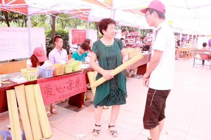计算机学院今年的迎新工作更加注重细节,为新生和家长提供了更多的人性化服务。为解决新生家长晚上报到临时找不到住宿地方的问题,学院特别在迎新点为新生家长提供了爱心凉席,令他们深受感动。