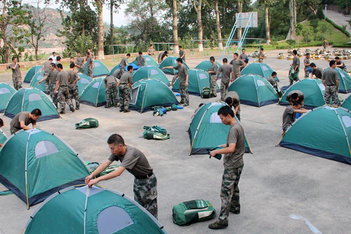 上午八时,全体毕业国防生在学院楼前集合完毕。选培办干事张扬一声行军令下,拉练正式拉开帷幕。本次拉练主要包括长途行军、野外扎营、野外生存三项内容。拉练途中,有计划的进行了防突袭迅速隐蔽、防核生化演练、遭敌炮火封锁急速行军、歼灭小股来袭敌人等多个科目的演练。毕业国防生不畏艰难,用顽强的意志、过硬的素质,克服了恶劣天气和复杂的地势环境带来的不良影响,没有一人掉队。经过数小时的长途行军,按规定时间到达目的地。