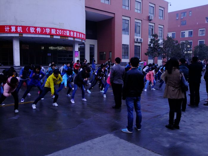 4月9日下午,土木工程学院2013年创意啦啦舞初赛在该院楼前成功举行。校团委副书记陈昊、体育学院老师梁华伟、该院党委书记朱天明、院党委副书记张明、副院长王有凯、梁为民、团委书记何军以及部分教职工观看了本次比赛。