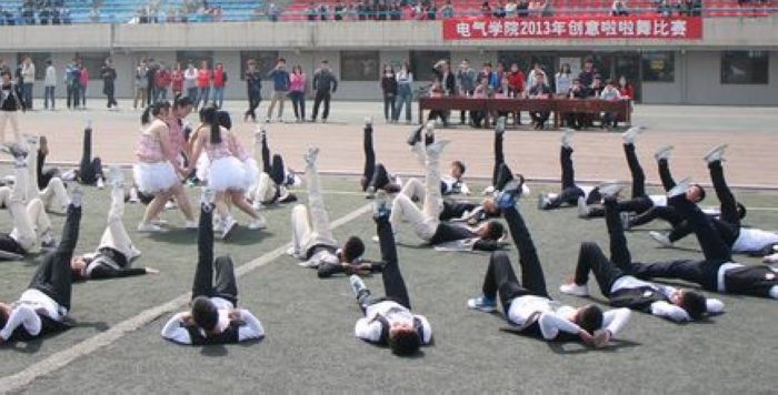 为丰富校园文化生活,促进学生全面发展,近日,电气学院2013年啦啦舞比赛在我校东区体育场成功举办。校团委副书记陈昊、体育学院老师梁华伟、校团委薛茜老师、音乐学院老师郭慧娟、该院党副委书记王瑞、该院团委书记郑伟受邀担任本次比赛评委。本次比赛共有六支队伍参加。