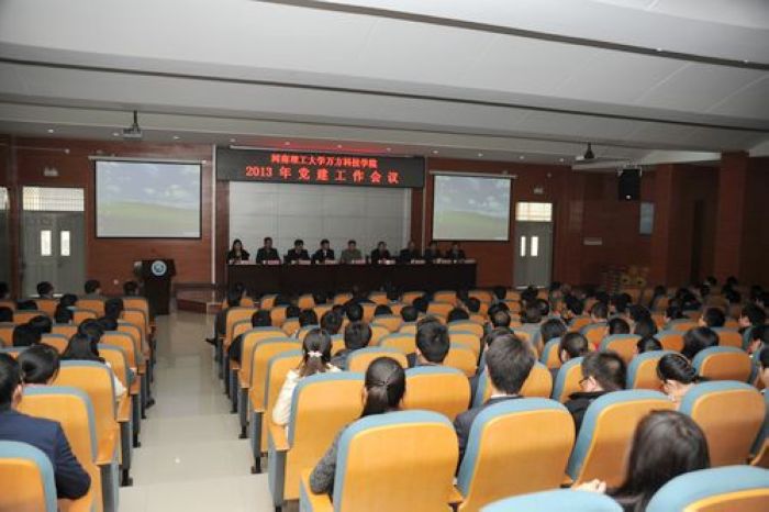 4月1日下午,万方学院2013年党建工作会议在郑州校区301报告厅隆重召开。董事长李光宇、院长王裕清、院党委书记王建中、常务副院长郑伦仁、常务副院长徐仲昆、副院长王海星、党委副书记兼工会主席解东辉、党委副书记杨玉海、副院长李花、董事陈斌、院长助理尚敏、茅艳出席会议,郑州、焦作两校区师生党员代表参加大会。会议由党委副书记兼工会主席解东辉主持。