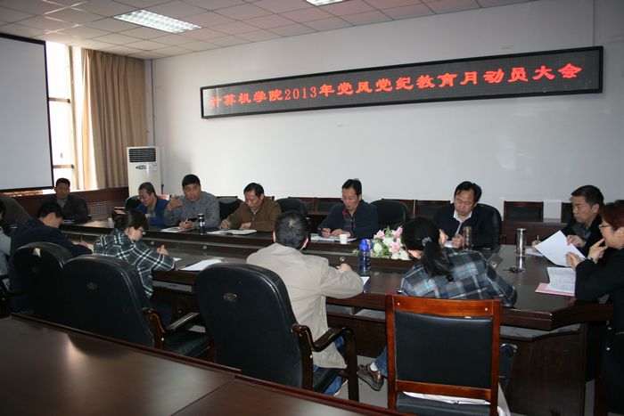 为进一步教育引导广大党员干部立党为公、执政为民、脚踏实地、求真务实、严于律己、廉洁奉公,加强校园廉洁文化建设,坚持党的先进性和纯洁性,计算机学院4月2日在217会议室召开2013年党风党纪教育月动员大会,会议由院党委书记王全才主持,学院领导和支部书记参加了会议。