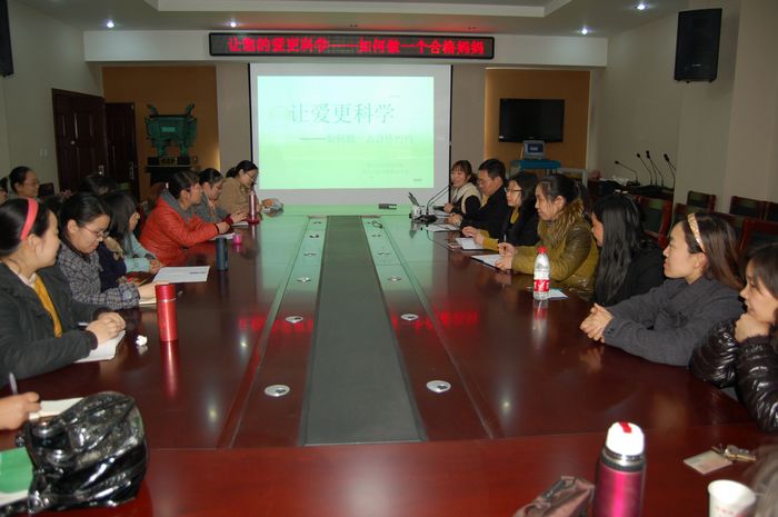3月7号下午,在文综楼311会议室,针对外国语学院年轻女教工多,年轻妈妈多这一情况,院工会邀请到爱尔天使早期教育中心校长王亚芳,做了一场名为“让您的爱更科学——如果做一名合格妈妈”讲座,讲座由工会主席王哲主持。王哲首先介绍了王亚芳的从教经历、取得的荣誉称号。讲座首先从“母亲——孩子的总设计师,国家命运的主宰者”说起,陈述了做一名合格妈妈的重要性;继而探讨了孩子童年时代,如何为孩子营造丰富的环境,提供更多的良性刺激,刺激孩子大脑神经元发展,促进的“八大智能”开发,为孩子美好一生打下基础。王亚芳校长幽默形象的语言,深入浅出的讲解,穿插着多年工作中积累的案例,深深吸引了在场的每一位听众。更有许多女教工向王亚芳提出了自己育儿过程中遇到的种种问题,现场气氛十分活跃,听众们都收获了很多先进的早教知识和育儿理念。更有其他院系女教工也被这新颖,务实的主题所吸引,来到外国语学院参与其中。